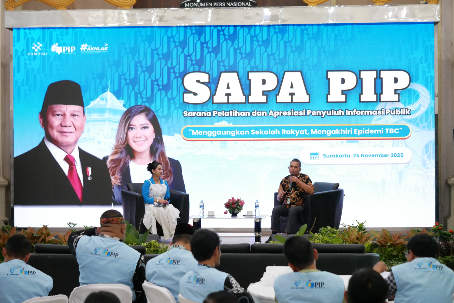 Surakarta — Direktorat Kemitraan Komunikasi Lembaga dan Kehumasan Kementerian Komunikasi dan Digital (Komdigi) Republik Indonesia menyelenggarakan kegiatan SAPA PIP (Sarana Pelatihan dan Apresiasi Penyuluh Informasi Publik) bertema “Menggaungkan Sekolah Rakyat, Mengakhiri Epidemi TBC” sebagai bagian dari upaya memperkuat peran PIP dalam mendiseminasikan program prioritas pemerintah kepada masyarakat khususnya terkait Sekolah Rakyat dan Penanggulangan TBC.