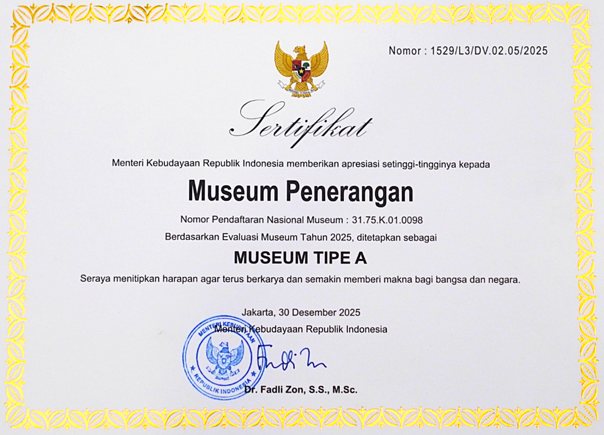 Jakarta - Mengawali tahun 2026 dengan gemilang, Museum Penerangan secara resmi dianugerahi predikat Museum Tipe A oleh Kementerian Kebudayaan Republik Indonesia. Predikat tertinggi untuk indikator sebuah museum dalam standardisasi yang diterapkan, membuktikan bahwa Museum Penerangan mampu dalam mencapai titik sebagai Museum yang berdampak nyata bagi masyarakat. Memiliki status sebagai Museum Tipe A ini menjadi fondasi kuat bagi Museum Penerangan terus menjadi ruang edukasi sejarah informasi dan komunikasi yang adaptif dan akuntabel.